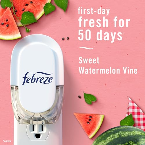 Febreze Plug In Air Freshener, Odor-Fighting Scented Oil Refill, Air Fresheners for Home and Bathroom and Kitchen, Long Lasting for Strong Odors, Sweet Watermelon Vine Scent, 0.87oz Refill, 3 Count