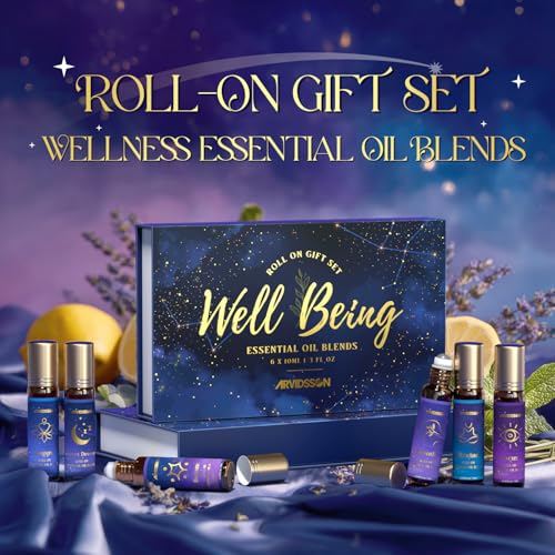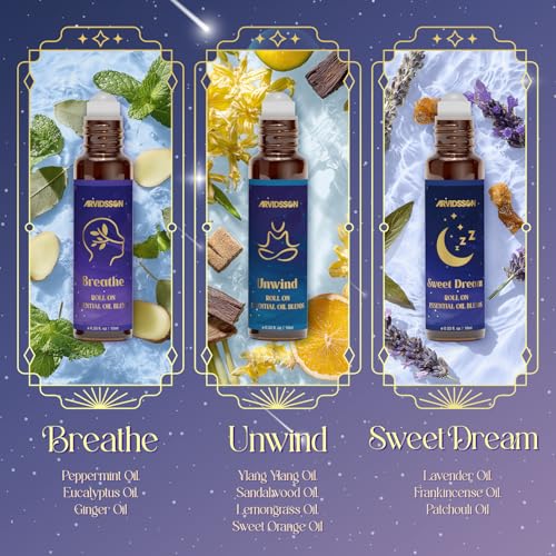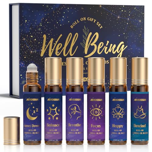 Essential Oils Roll On Set, Natural Aromatherapy Oil Roller for Body, Skin, Massage, Essential Oil Blends – Sweet Dream, Unwind, Breahte, Balance, Focus, Happy, Gifts for Women