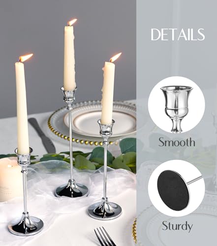 Candlestick Holders Taper Candle Holders, Set of 6 Silver Candle Holder Set, Vintage Table Centerpiece for Wedding Christmas Holiday