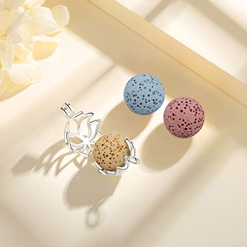 INFUSEU Essential Oil Diffuser Necklace Aromatherapy Jewelry for Women TeenGirls, Small Lotus Flower Pendant, 7 Lava Rock Stones, 24″ Snake Chain