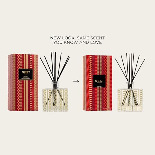NEST New York Reed Diffuser, Holiday – 5.9 fl oz – Fragrance for Up to 90 Days – Reusable, Refillable Glass Holder – Includes 8 All-Natural Reed Sticks – Flame Free