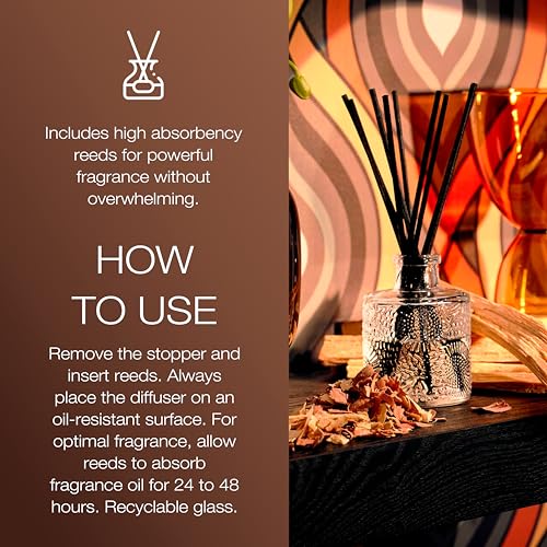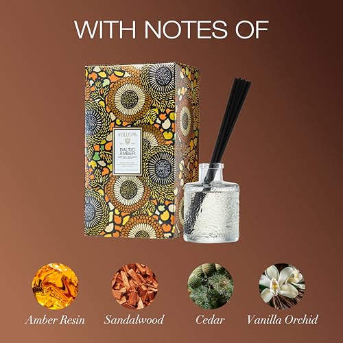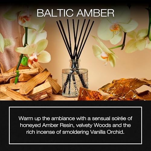 Voluspa Baltic Amber Scented Reed Diffuser, 3.4 oz, Oil Reed Diffusers for Home, Handcrafted in The USA