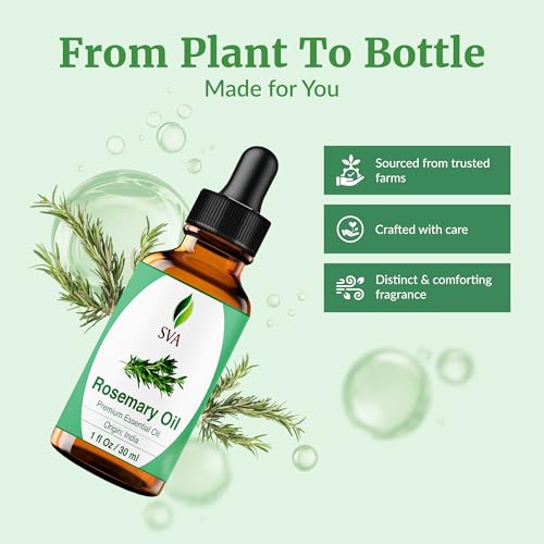SVA Rosemary Essential Oil – 1 Fl Oz – 100% Natural Rosemary Oil for Hair, Face, Skin Care, Diffuser, Aromatherapy, Scalp, Body Massage, Soap and Candle Making – with Dropper