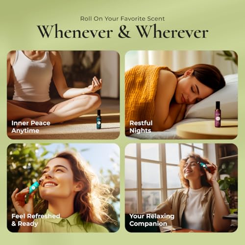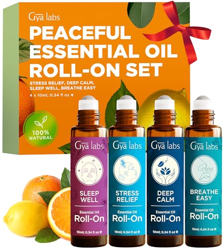 Gya Labs Peaceful Roll on Essential Oils Set – 100% Pure Natural Relaxing Gift for Women & Men – Blend for Calming, Refreshing, Stress Comfort, Aromatherapy Essential Oil Gift Set (0.34 Fl Oz Each)