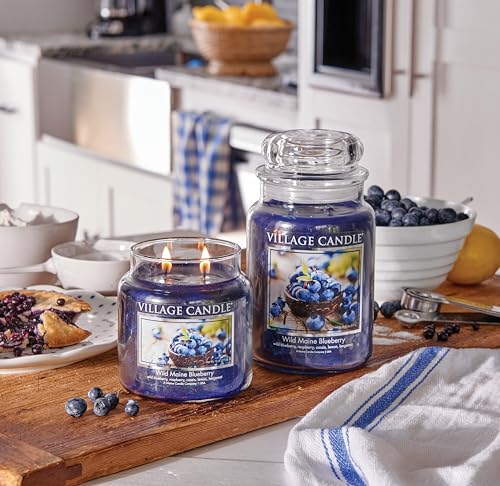 Village Candle Wild Maine Blueberry Large Glass Apothecary Jar Scented Candle, 21.25 oz, Dark Blue