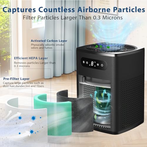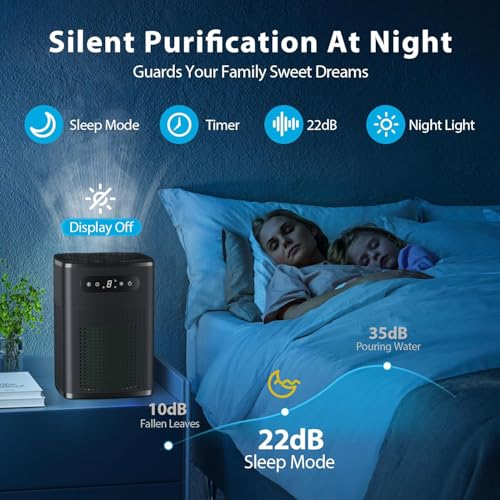 Air Purifiers for Bedroom, HEPA Covers Up to 302 sq.ft Room, 24db Sleep Model, Night Lighting, 3 Timers, with Aromatherapy for Bedroom, Dorm Room, Apartment, Kitchen-HY1800