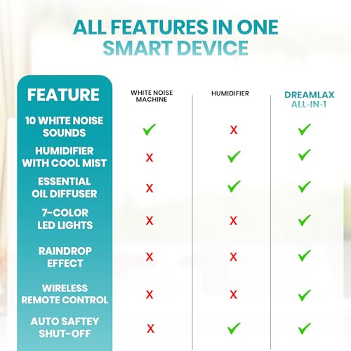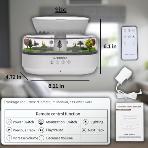 Dreamlax Rain Humidifier for Bedroom – Cool Mist Essential Oil Diffuser, White Noise Machine with 10 Nature Sounds, 7 LED Lights, Remote Control & Decorative Raindrop Lamp