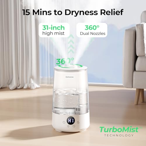 [15 Min to Dryness Relief] Dual 31-inch fine mist jets create a humidity-rich environment in 15 minutes that lasts up to 34 hours on a single refill, keeping your skin continuously moisturized and greatly relieving symptoms such as allergies and colds.