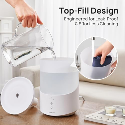 Top-Fill Design for Easy Refills: Forget the hassle of flipping your humidifier upside down; the top-fill design makes refilling the tank straightforward and spill-free, ensuring you can maintain optimal humidity levels with ease